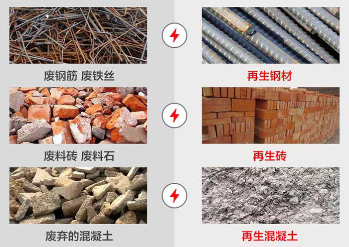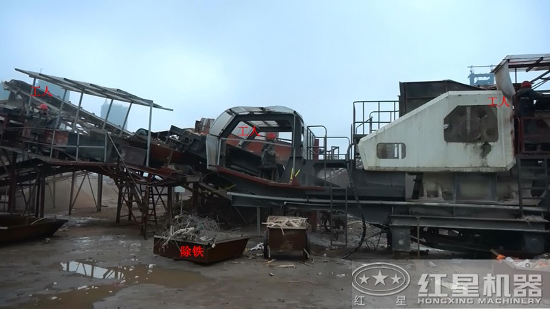 时产:100吨/时[1立方米=1.6吨],在破碎建筑垃圾混凝土固料时,要配置除铁器,除去混凝土中的钢筋。