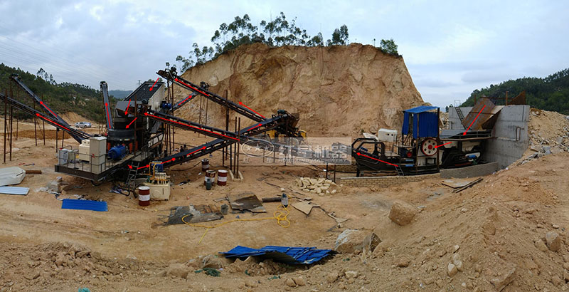 其中移动颚式破碎站由振动给料机,颚式破碎机,皮带输送机加上其它部件组成。